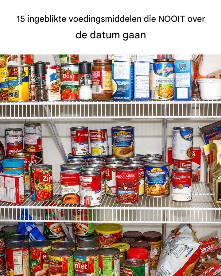 Sommige voedingsmiddelen hebben eigenschappen waardoor ze oneindig lang houdbaar zijn. Factoren zoals een laag vochtgehalte, een hoge zout- of suikerconcentratie en de afwezigheid van vetten en oliën spelen een belangrijke rol bij het conserveren van deze voedingsmiddelen. Zulke items kunnen in de loop van de tijd kleine veranderingen in smaak of textuur ondergaan, maar blijven volledig veilig voor consumptie.