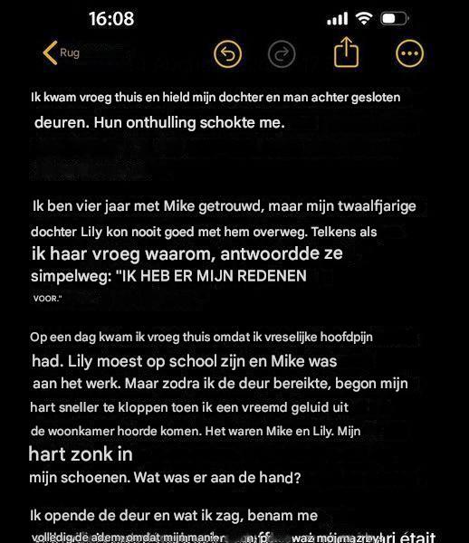 Elizabeth, moeder van haar twaalfjarige dochter Lily, een meisje dat haar stiefvader niet kon uitstaan , hertrouwde met Mike na de dood van haar vorige man. Maar Lily accepteerde haar stiefvader nooit echt. « Mam, ik kan niet met Mike overweg! » « Ik heb mijn redenen, oké? » herhaalde ze vaak. Elizabeth probeerde haar duidelijk te maken dat Mike het beste voor haar wilde, maar Lily wilde niet luisteren. Mike stemde er van zijn kant mee in om hen tijd te geven, want de sfeer in een lappendekengezin is nooit prettig.