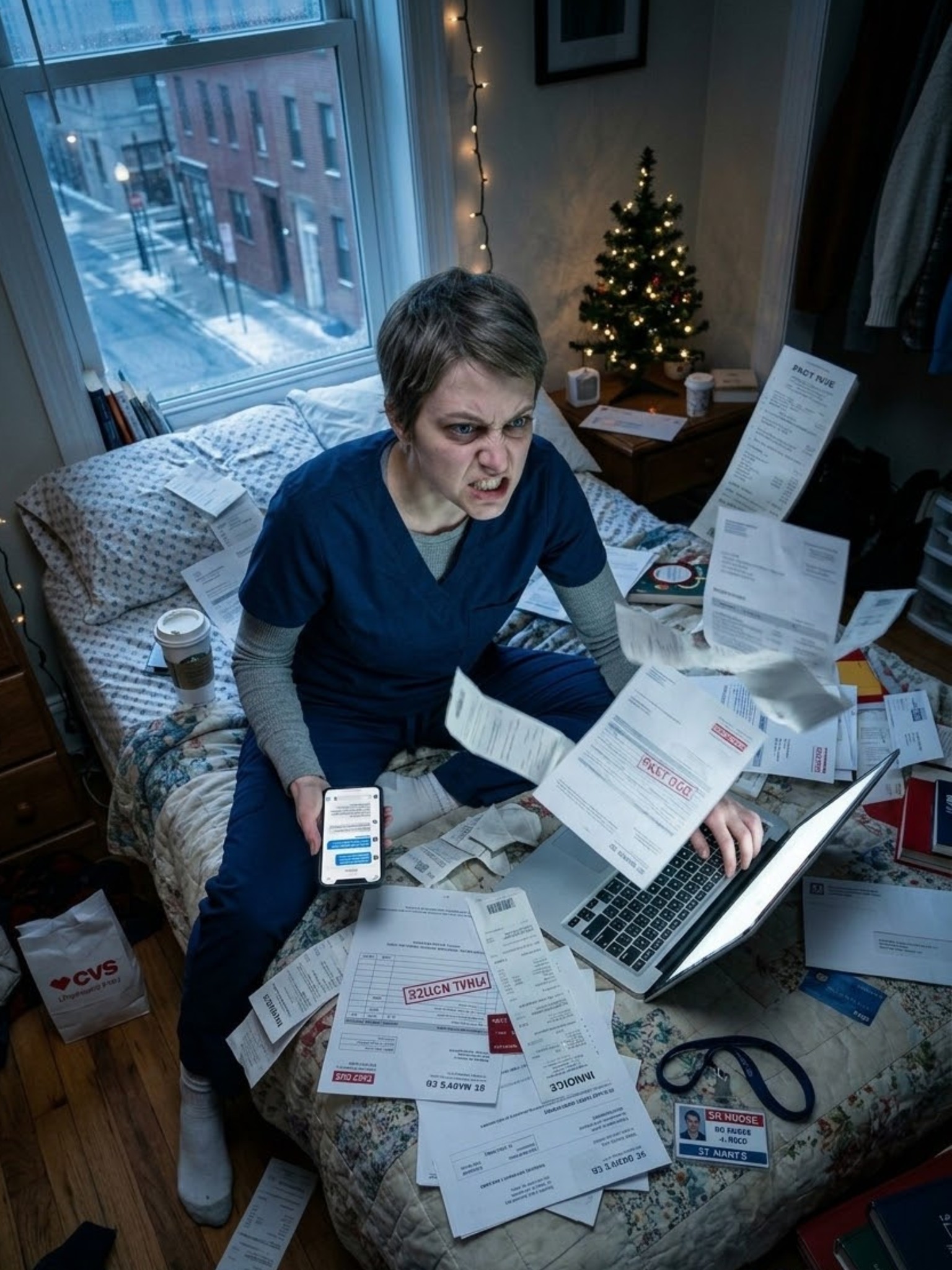 De kamer om me heen was donker, behalve het blauwe licht van het scherm en de dunne strook straatlicht dat door mijn jaloezieën sijpelde. Ik droeg nog steeds mijn scrub top—gekreukt, lichtjes ruikend naar antisepticum en de angst van iemand anders—omdat ik uit het ziekenhuis naar huis was gestrompeld en op bed was neergevallen zonder zelfs maar te komen. Twaalf uur op de intensive care had mijn lichaam laten zoemen op die vreemde manier die uitputting doet, waarbij je zo moe bent dat je eigenlijk niet kunt slapen.