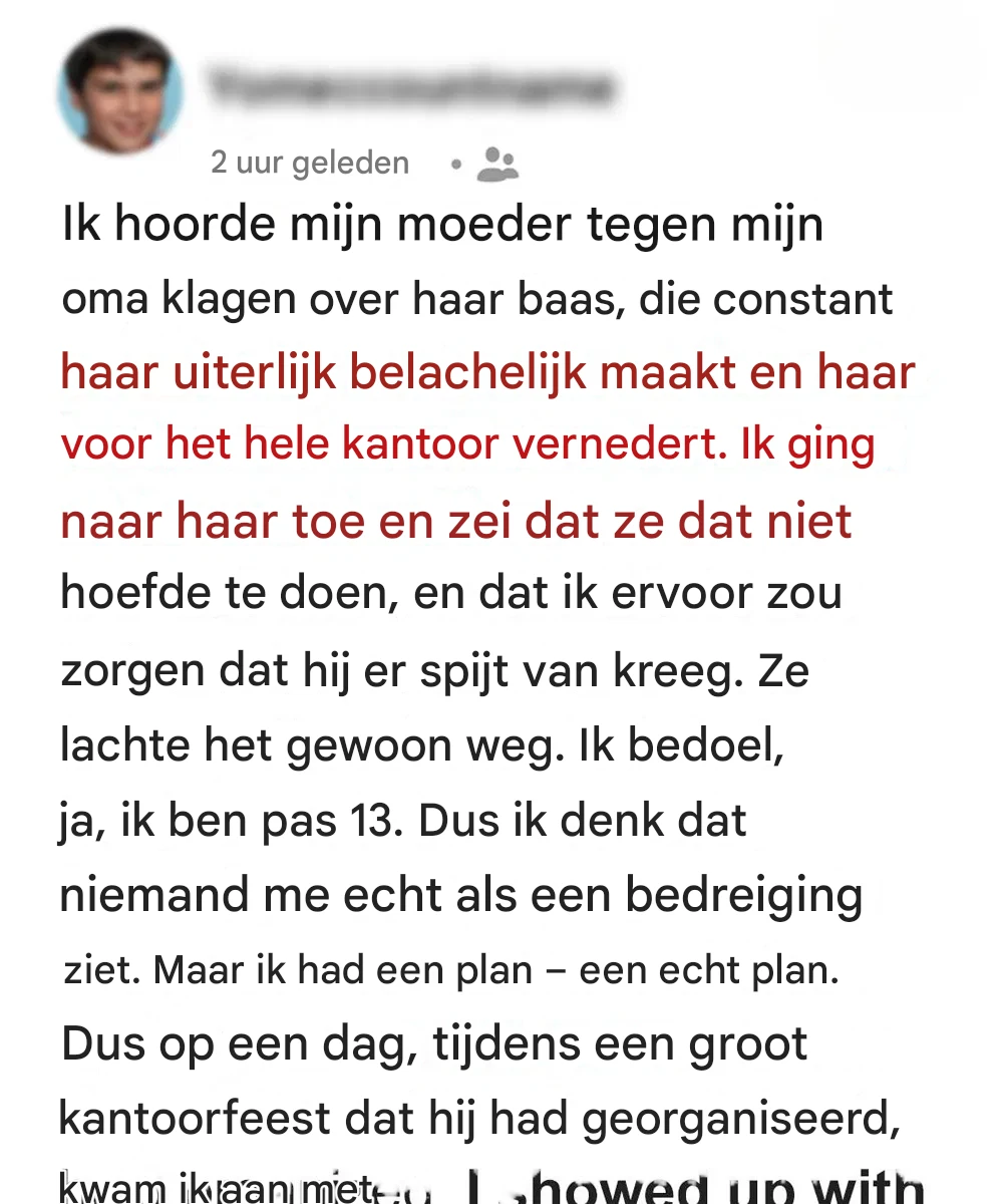 Haar baas, Richard, had haar kleding uit de kringloopwinkel belachelijk gemaakt tegenover haar collega’s, haar gekleineerd en haar het gevoel gegeven dat ze waardeloos was.