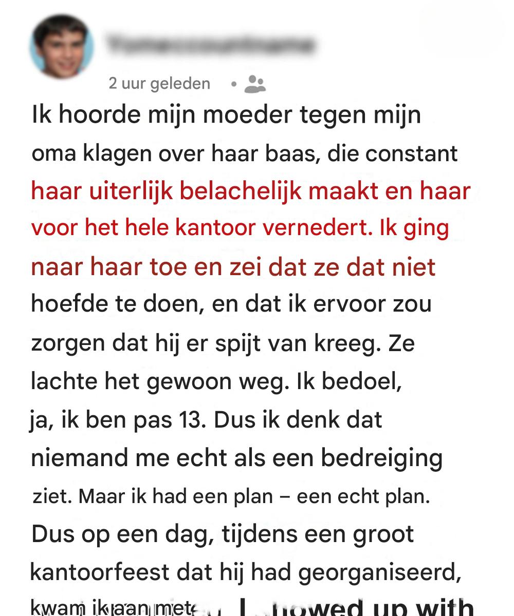 Haar baas, Richard, had haar kleding uit de kringloopwinkel belachelijk gemaakt tegenover haar collega’s, haar gekleineerd en haar het gevoel gegeven dat ze waardeloos was.
