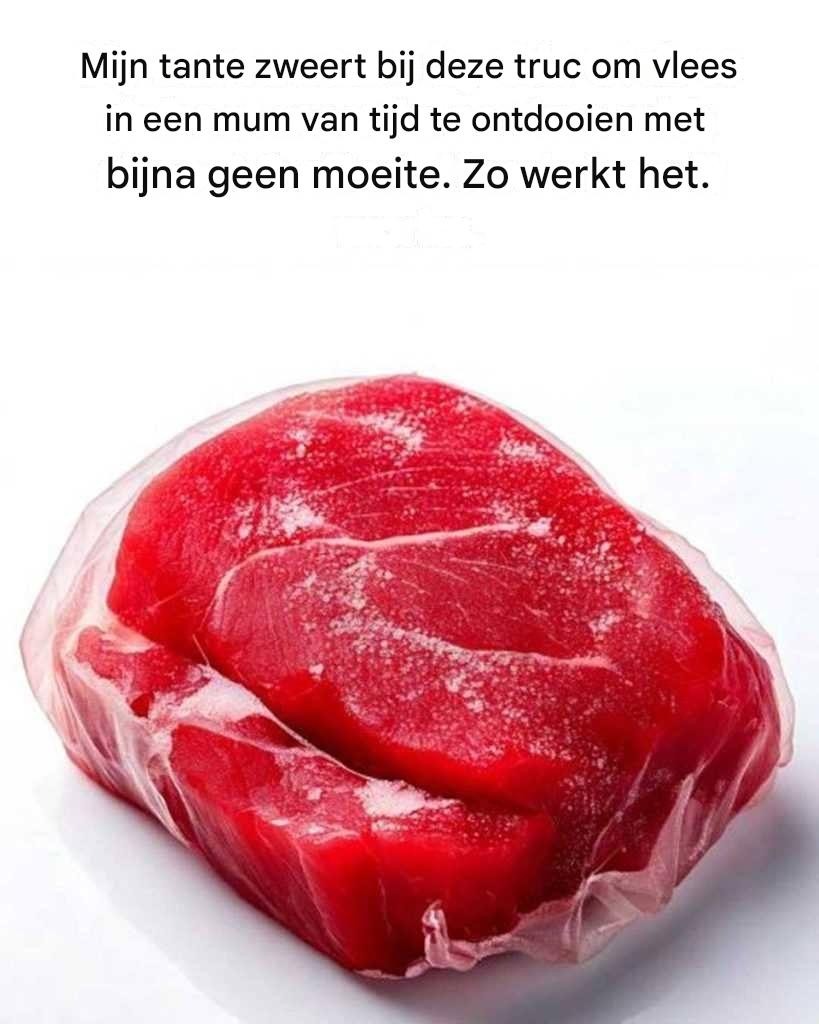 Vlees ontdooien kan vaak een tijdrovende en frustrerende klus zijn, vooral als je haast hebt om een ​​maaltijd te bereiden. Velen van ons hebben wel eens ervaren hoe moeilijk het is om een ​​bevroren stuk vlees snel te ontdooien, met als gevolg ongelijkmatig ontdooide porties of, erger nog, halfgaar geworden randen. Mijn tante, een ervaren thuiskok, heeft een simpele maar effectieve truc ontdekt waarmee je vlees snel en met minimale moeite kunt ontdooien. In dit artikel onderzoeken we haar methode en waarom dit wel eens jouw ultieme oplossing voor het ontdooien van vlees zou kunnen worden.