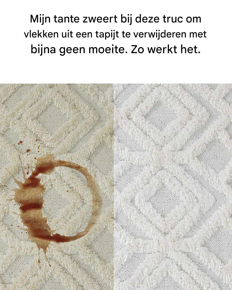 Tapijten zijn een onmisbaar element in veel huizen en zorgen voor warmte en comfort. Ze staan er echter ook om bekend dat ze vlekken aantrekken door morsen, vuil en dagelijks gebruik. Traditionele tapijtreinigingsmethoden kunnen arbeidsintensief en tijdrovend zijn, en vereisen vaak schrobben, weken en soms professionele tussenkomst. Maar wat als er een manier was om die vervelende vlekken met vrijwel geen moeite te verwijderen? Mijn tante heeft een geheime truc waar ze bij zweert, en die zowel simpel als effectief is. In dit artikel bespreken we haar methode en hoe deze je tapijtreinigingsroutine een fluitje van een cent kan maken.