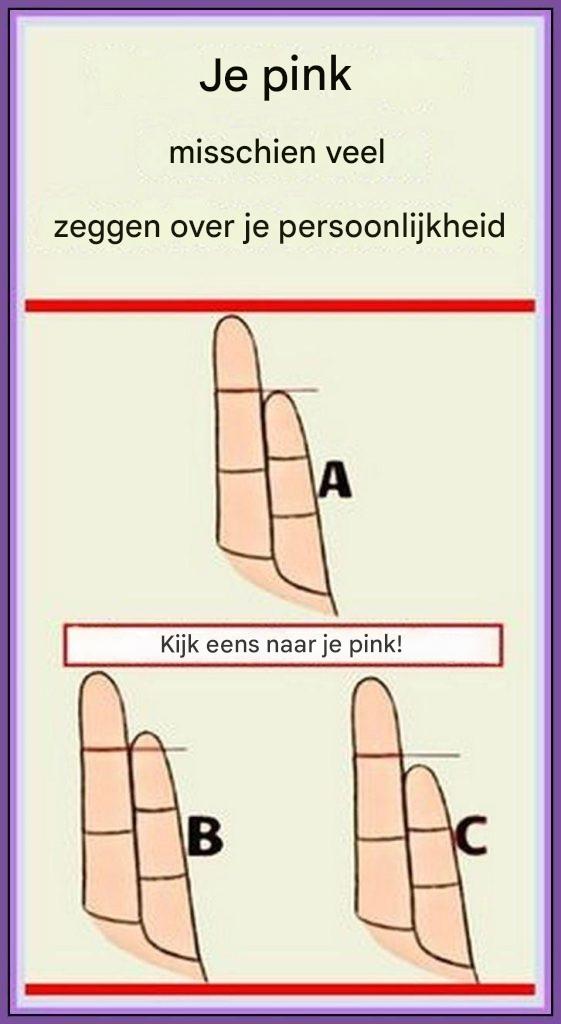 De lengte van je pink in verhouding tot de andere vingers zou verschillende aspecten van je karakter kunnen aangeven.