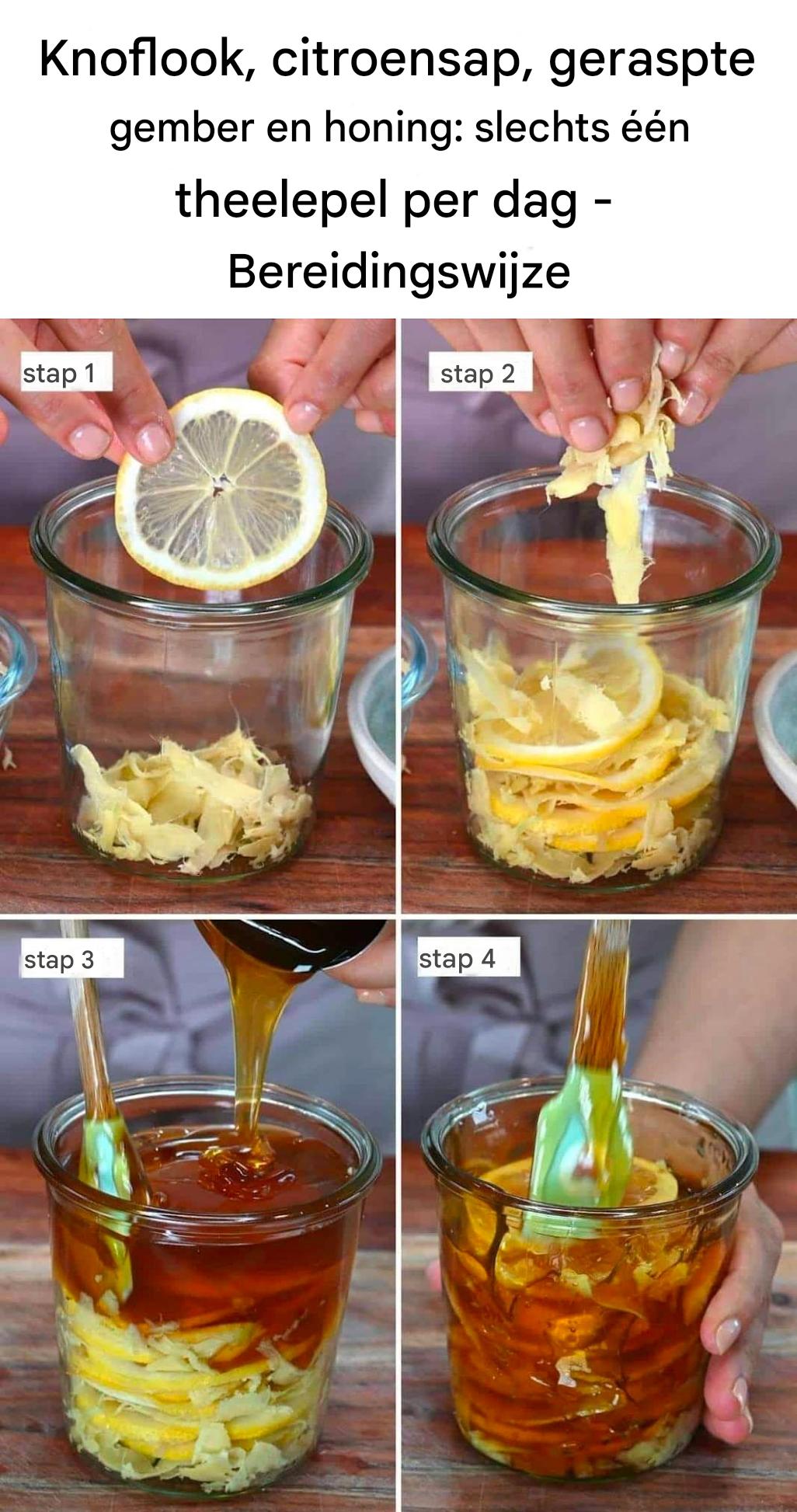 Knoflook, citroensap, gember en honing vormen samen een krachtig, natuurlijk recept dat bekendstaat om zijn vele voordelen. Het dagelijks consumeren van een theelepel van deze mix kan je immuunsysteem versterken, je energie verhogen en je algehele gezondheid verbeteren, inclusief je spijsvertering en cardiovasculaire gezondheid. Hier lees je hoe je deze tonic kunt bereiden en in je dagelijkse routine kunt opnemen.