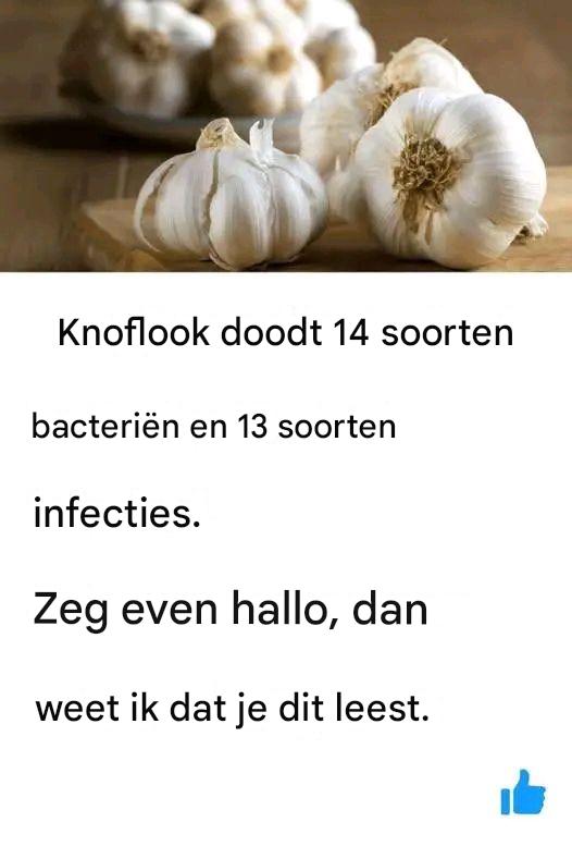 wetenschap heeft veel van de beweringen over knoflook ondersteund. Uit onderzoek blijkt dat knoflook tot 14 soorten bacteriën kan neutraliseren en 13 soorten infecties kan bestrijden. Dit maakt het tot een superfood die we in ons dagelijkse dieet zouden moeten opnemen. Koop vitamines en supplementen