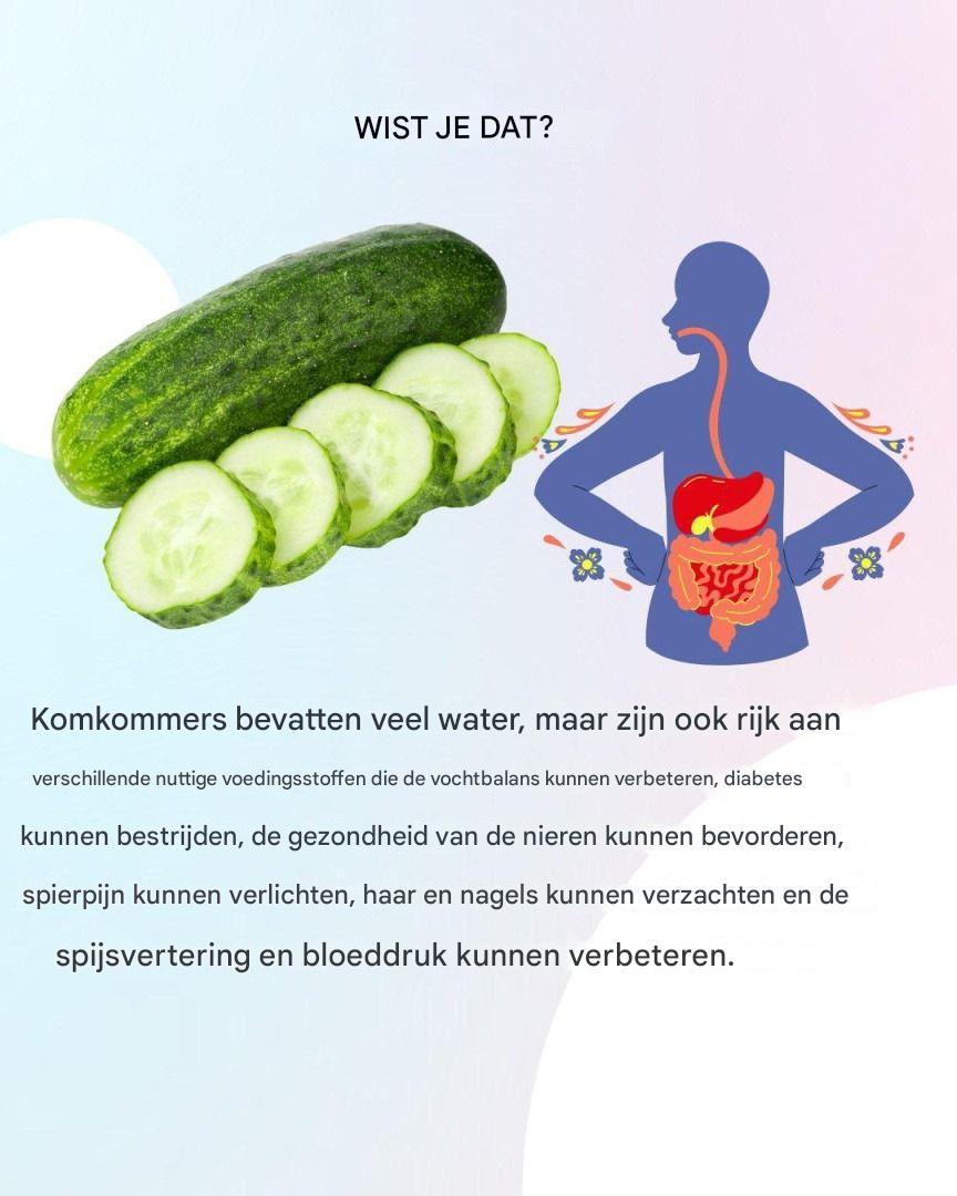 Komkommer is veel meer dan alleen een verfrissend ingrediënt voor salades. Met zijn hoge watergehalte, milde smaak en veelzijdigheid in de keuken is deze groente een natuurlijke bondgenoot voor het algehele welzijn. Hoewel vaak over het hoofd gezien, biedt komkommer een indrukwekkend scala aan voedings- en medicinale voordelen.