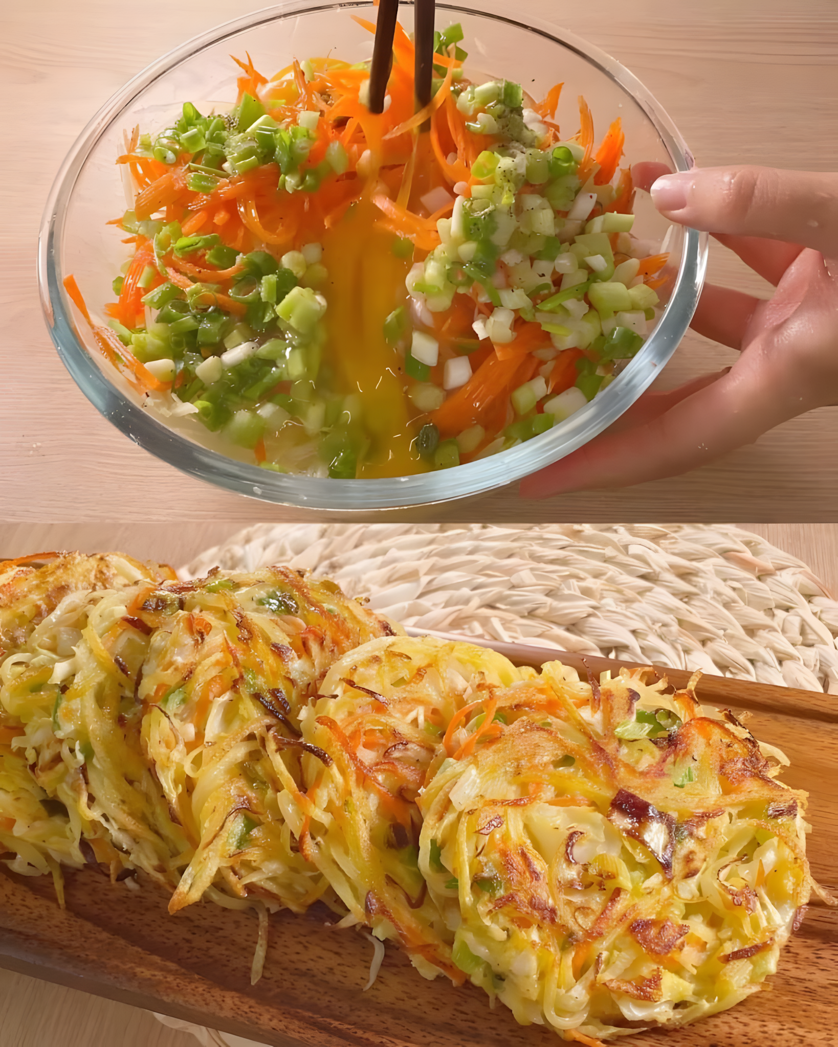 Krokant, kleurrijk en gezond – deze groentepannenkoekjes zijn een hit op elk moment van de dag! 🥕🥬🥔 – Beste recepten
