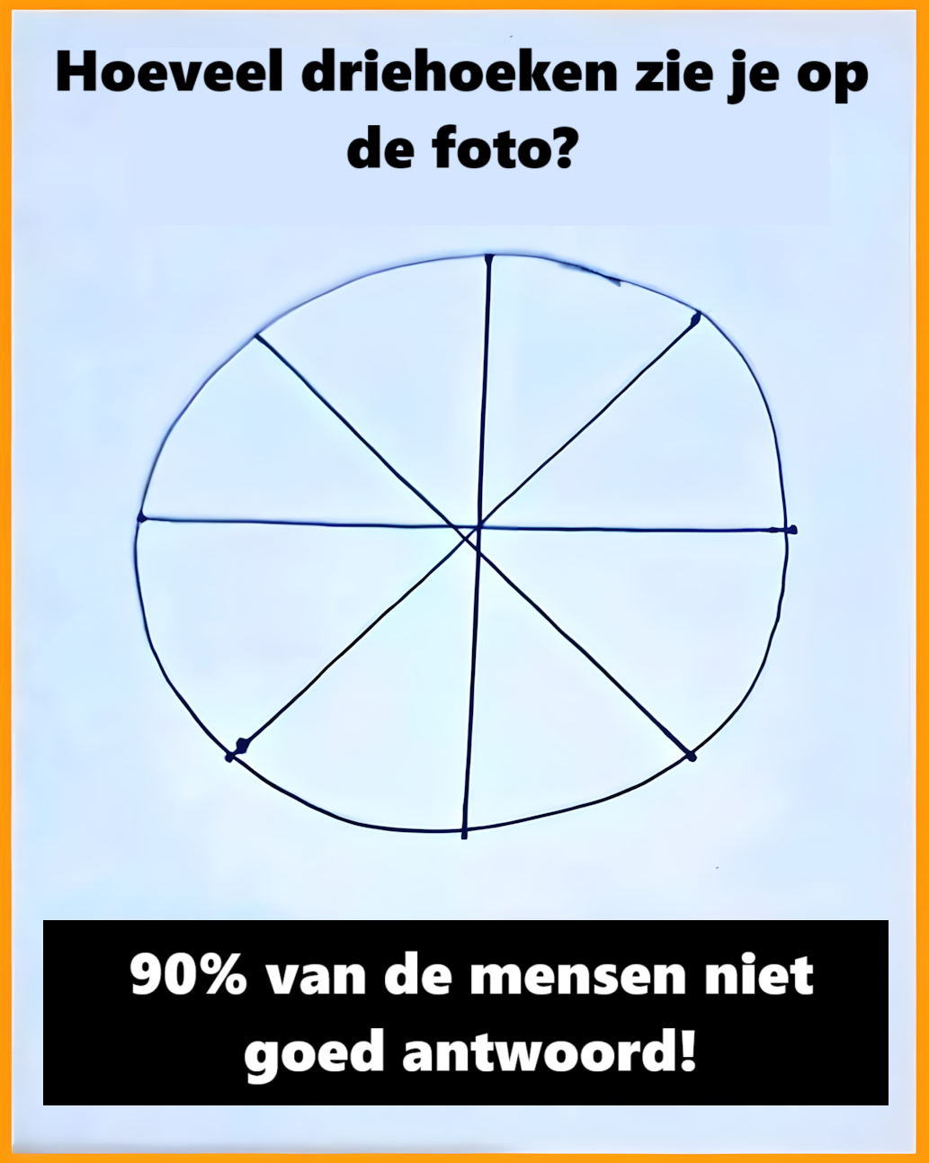 Het lijkt op een symmetrisch gesneden taart. Een cirkel, vier rechte lijnen die elkaar in het midden kruisen, en een simpele handgeschreven vraag: « Hoeveel driehoeken? » « Makkelijk, toch? En toch… Deze kleine visuele puzzel, die razendsnel circuleert op sociale media, stelt zelfs de meest oplettende geest op de proef. Dus, ben je klaar om de uitdaging aan te gaan?