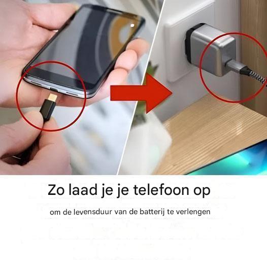 ✅ De ideale lading voor uw telefoon is 20-30% om te voorkomen dat de batterij volledig leegloopt.