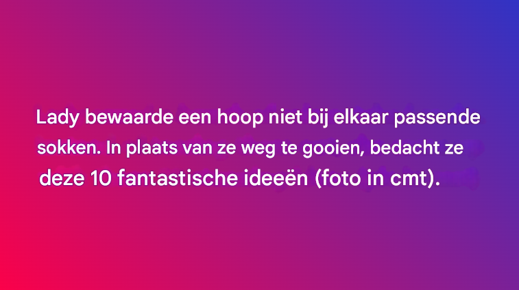 Het ontdekken van sokken die niet bij elkaar passen onderin een wasmand kan frustrerend zijn. Een vindingrijke dame keek echter verder dan de chaos van losse sokken en zag een wereld aan creativiteit voor zich. In plaats van deze sokken weg te gooien, bedacht ze tien indrukwekkende en praktische toepassingen. Deze ideeën zijn niet alleen kosteneffectief, maar bevorderen ook duurzaamheid en creativiteit.