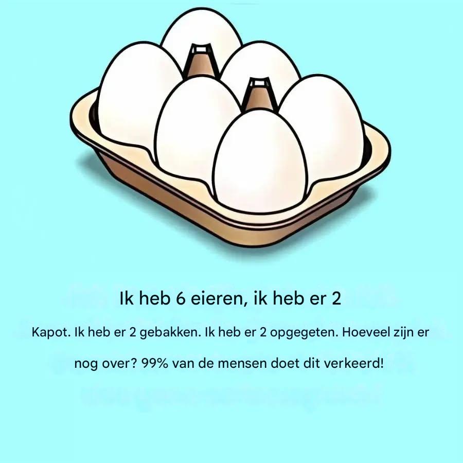 Stel je voor dat je voor zes eieren staat. Hoeveel zijn er eigenlijk over na het gebruiken van twee? Een simpele puzzel met een verrassend antwoord…