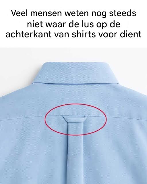 We zien het zonder dat we het echt merken. Het valt op in de stof, discreet, bijna onschadelijk. Toch verbergt dit kleine lusje, dat op de achterkant van sommige shirts is genaaid – net tussen de schouderbladen – een verhaal dat even ongewoon als nuttig is. Waarom bestaat het? Is het slechts een stijldetail of een overblijfsel uit vervlogen tijden? Laat u meevoeren op een onverwachte reis naar het hart van de herenmode.