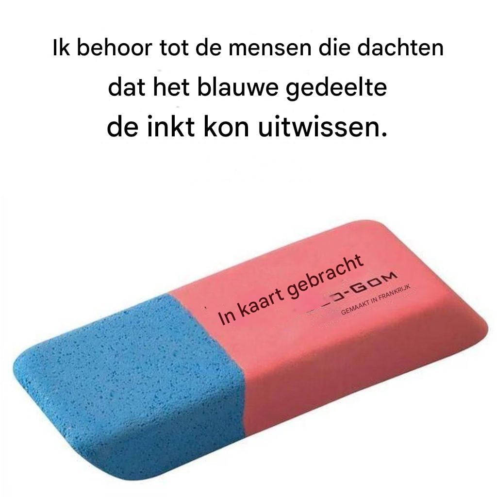 Wie herinnert zich niet de tweekleurige gum in zijn etui op school? Een roze kant om de pen mee uit te gummen, een blauwe kant… waar is dat ook alweer voor? Inkt wissen? Niet echt. Dit kantooraccessoire heeft eigenlijk meerdere toepassingen die vaak over het hoofd worden gezien. En u zult zien, de werkelijke functie ervan is veel praktischer dan wij dachten.
