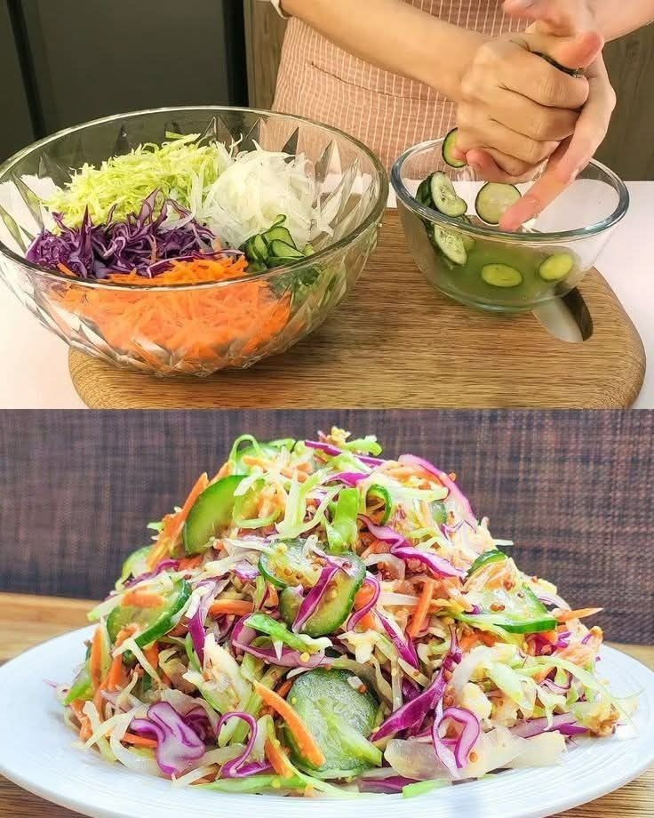 Salades zijn een van de beste gerechten om gezond gewichtsverlies te ondersteunen en tegelijkertijd essentiële voedingsstoffen te leveren. Deze mediterrane kool- en komkommersalade combineert lichte maar smaakvolle ingrediënten die niet alleen de vetverbranding bevorderen, maar het lichaam ook voorzien van vitamines en mineralen. Dankzij de kool, komkommers en extra kruiden krijgt deze salade eigenschappen die de stofwisseling ondersteunen en de spijsvertering verbeteren. Slechts een paar ingrediënten maken het een snelle en gezonde keuze voor elke dag.
