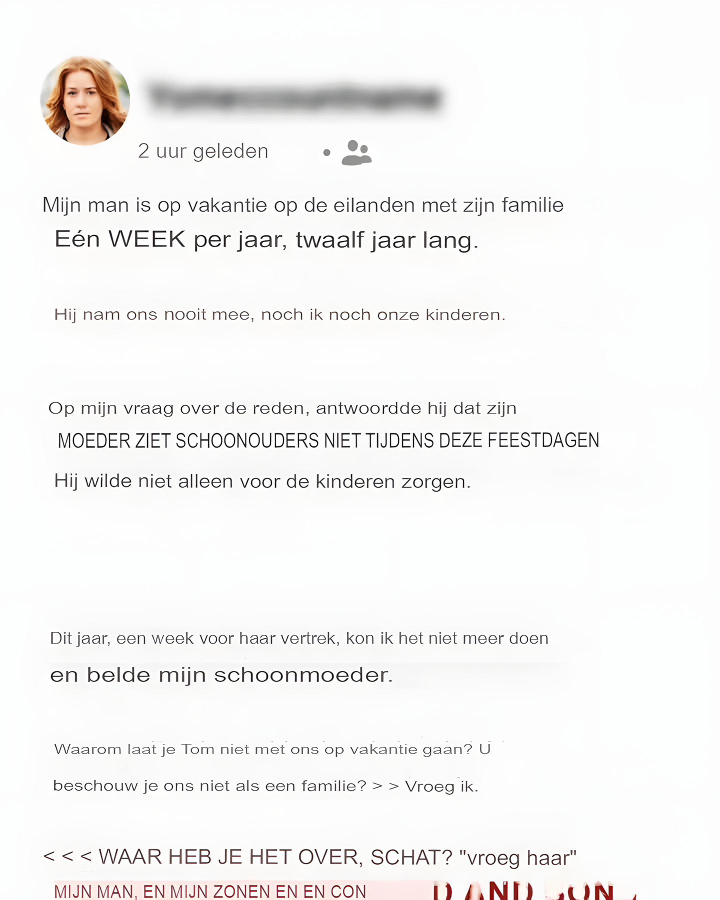 « Waarom laat je Tom ons niet meenemen? » « vroeg Layla, terwijl ze zag dat Denise’s uitdrukking veranderde van verwarring naar schok. Denise legde uit dat ze zelf niet aan de uitjes meedeed, omdat ze geloofde dat het een puur mannentraditie was, die door haar man Roger was gestart. Layla deelde de foto’s en Denise stemde ermee in om haar man ermee te confronteren.