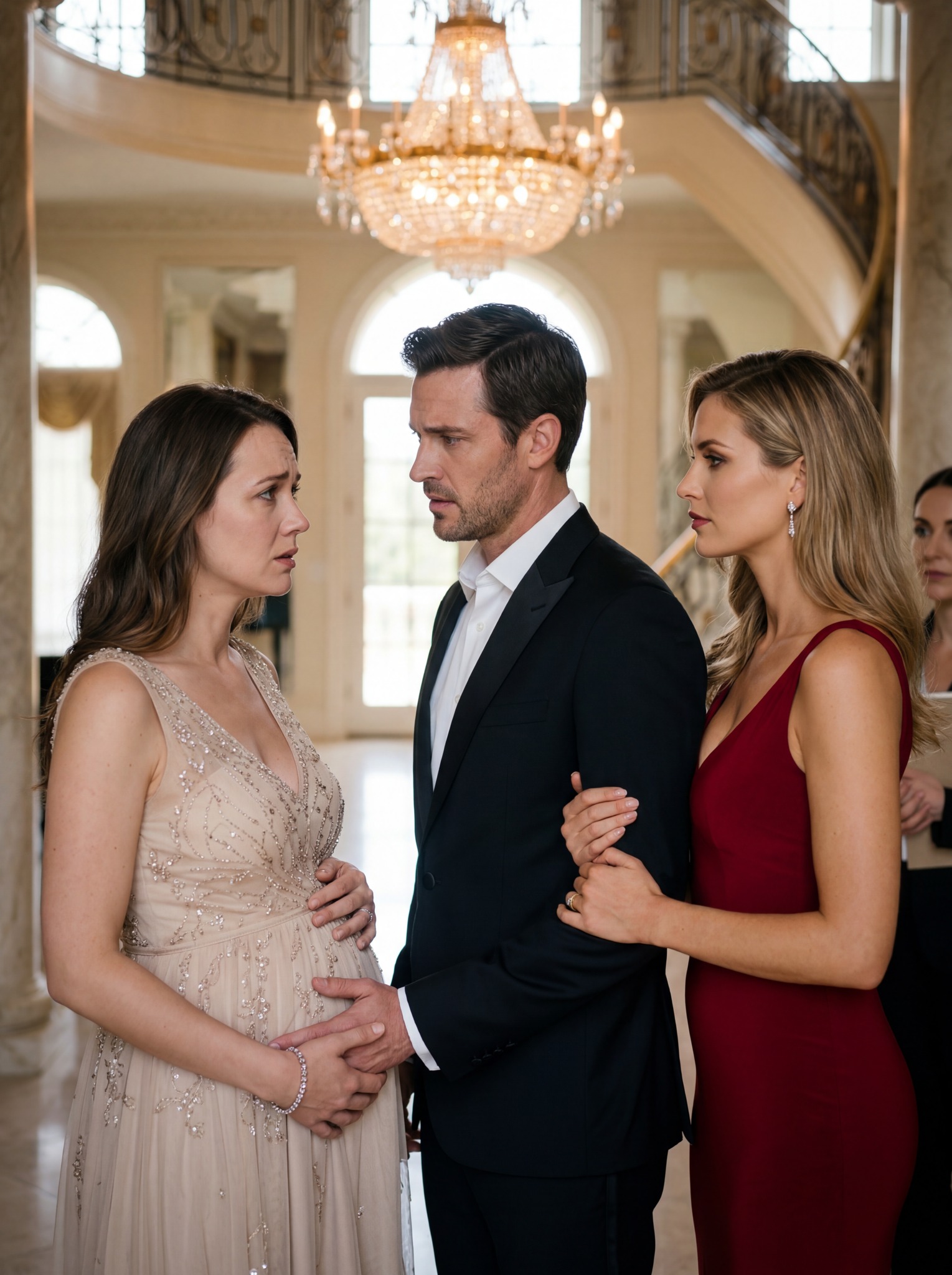Tegenover hem zat zijn vrouw, Charlotte Hayes , met wie hij al zeven jaar getrouwd was. Ze was gehuld in een bescheiden grijs vestje dat scherp contrasteerde met de elegante luxe om hen heen. Haar handen rustten instinctief op haar buik, waar een zes weken durende zwangerschap stilletjes de toekomst die ze zich met hem had voorgesteld, aan het veranderen was.