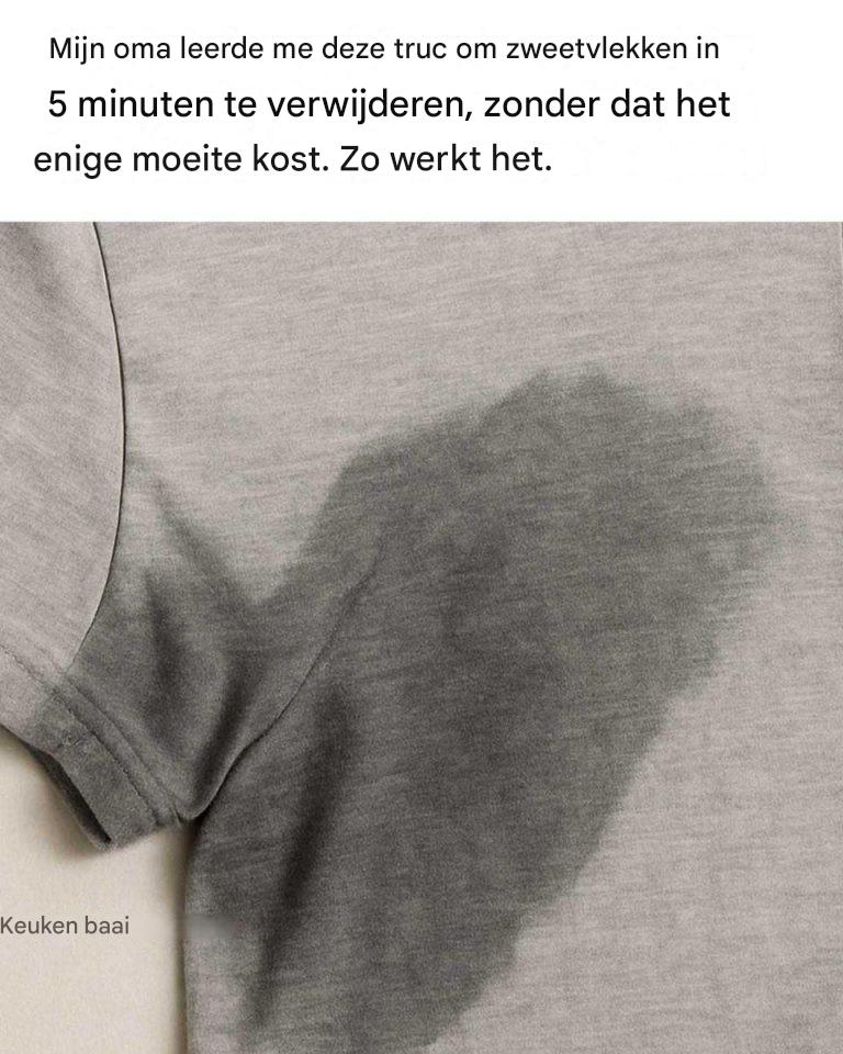 Gelukkig deelde mijn oma een simpele maar effectieve truc met me waarmee je zweetvlekken in slechts vijf minuten kunt verwijderen, vrijwel zonder moeite. Deze methode heeft mijn huishouden radicaal veranderd en bespaart zowel tijd als energie. In dit artikel deel ik haar geheim met je en leg ik uit hoe het werkt, zodat je voorgoed afscheid kunt nemen van zweetvlekken