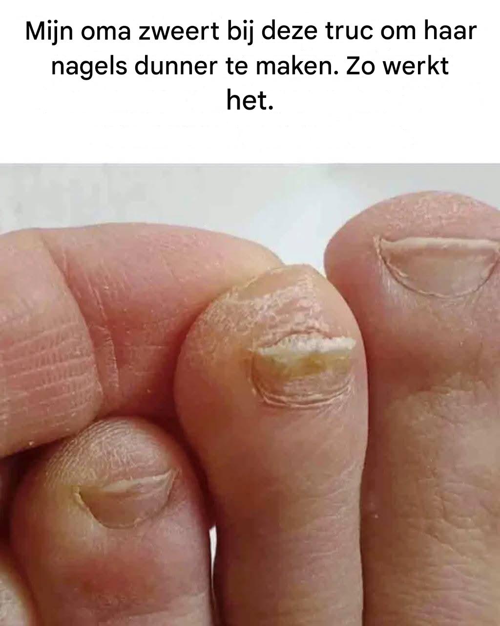– het resultaat? Dikke nagels, soms geel of ongelijkmatig, en steeds moeilijker te verzorgen. Het goede nieuws: dit ouderwetse middeltje kan je in een paar stappen helpen om dunnere, schonere nagels te krijgen.