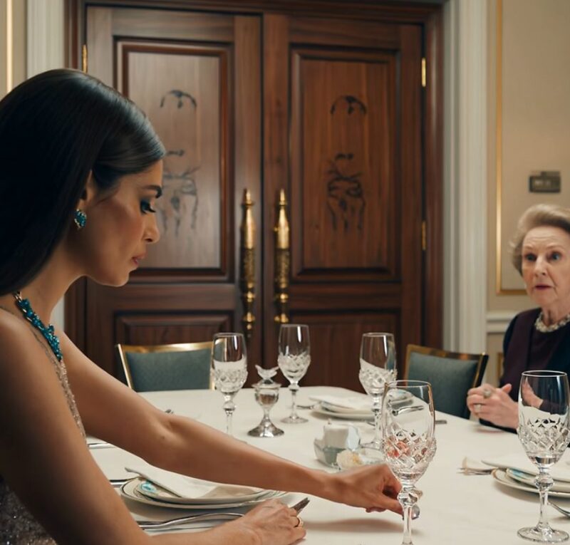 Het witte tafelkleed glinsterde in het kaarslicht, het zilveren bestek was perfect gedekt en de kristallen glazen weerkaatsten een delicate gloed.