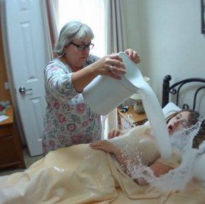 Mijn schoonmoeder gooide een emmer koud water over mij heen om mij wakker te maken, maar