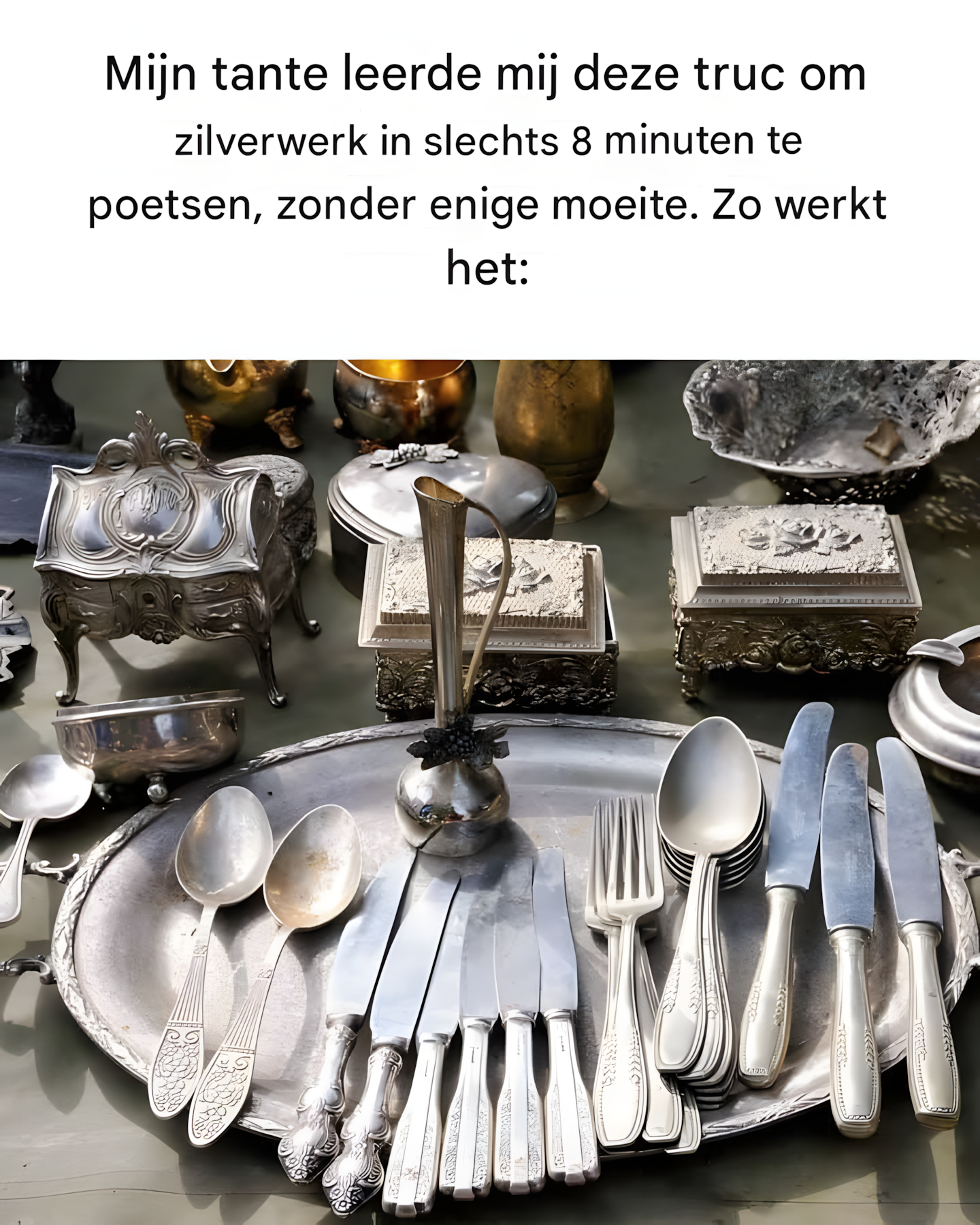 De truc die mijn tante me leerde, maakt gebruik van een eenvoudige chemische reactie die de aanslag omkeert, waardoor de glans van het zilver terugkomt zonder dat schurend polijsten nodig is.