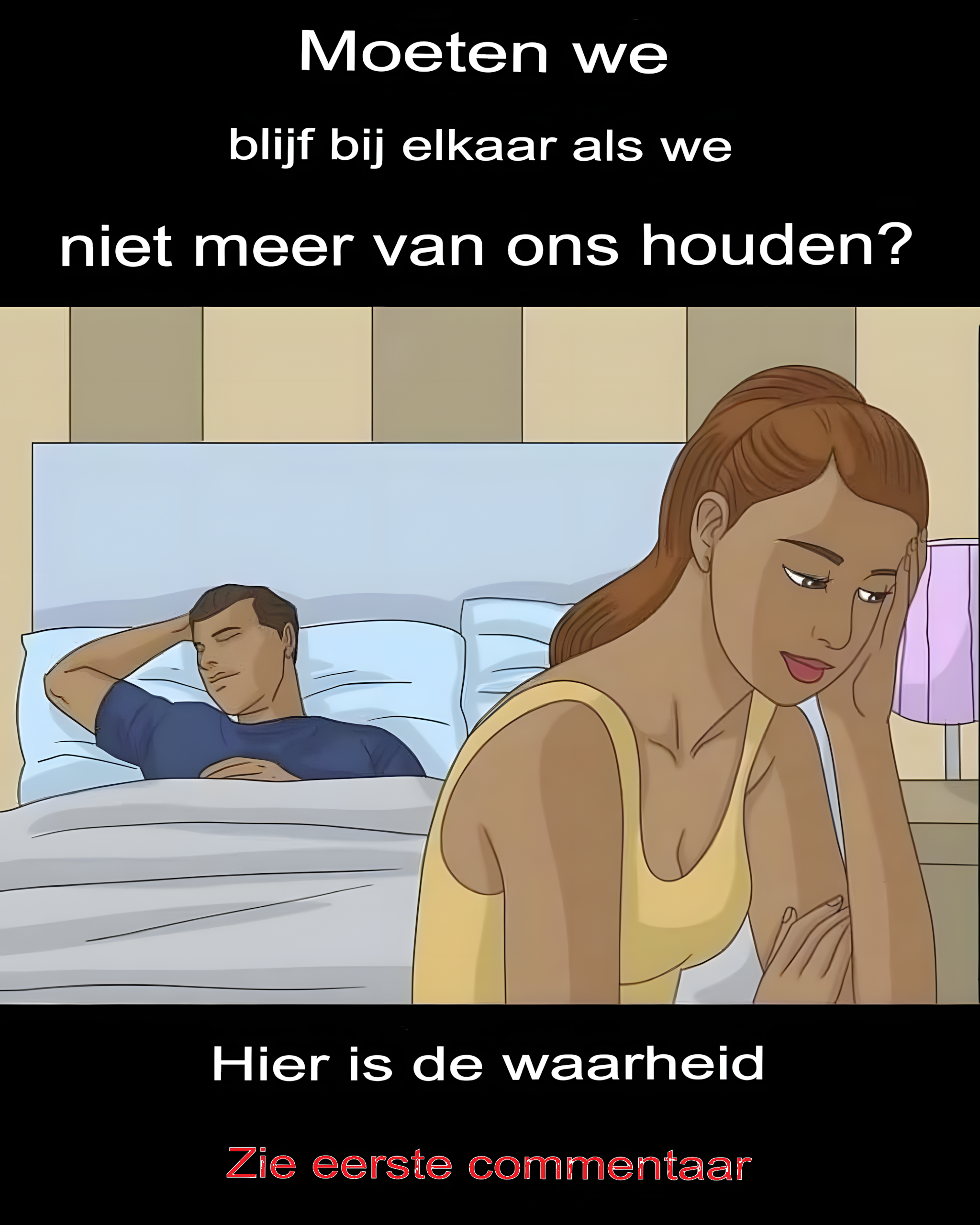 Er zijn veel berichten van ouders die als koppel bij elkaar blijven en beloven te vertrekken ‘als de kinderen ouder zijn’. Een kind neemt echter al op zeer jonge leeftijd de sfeer in het huis van zijn ouders waar. Hij voelt haar afstand, haar gebrek aan genegenheid en voelt zich soms zelfs schuldig als hij ziet dat ze ongelukkig is.