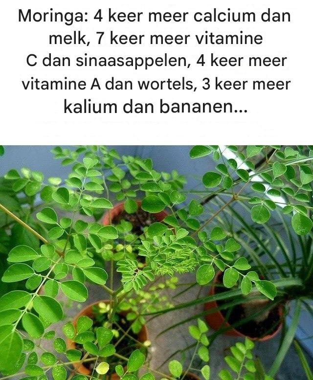 Moringa: 4 keer meer calcium dan melk, 7 keer meer vitamine C dan sinaasappelen, 4 keer meer vitamine A dan wortels, 3 keer meer kalium dan bananen…