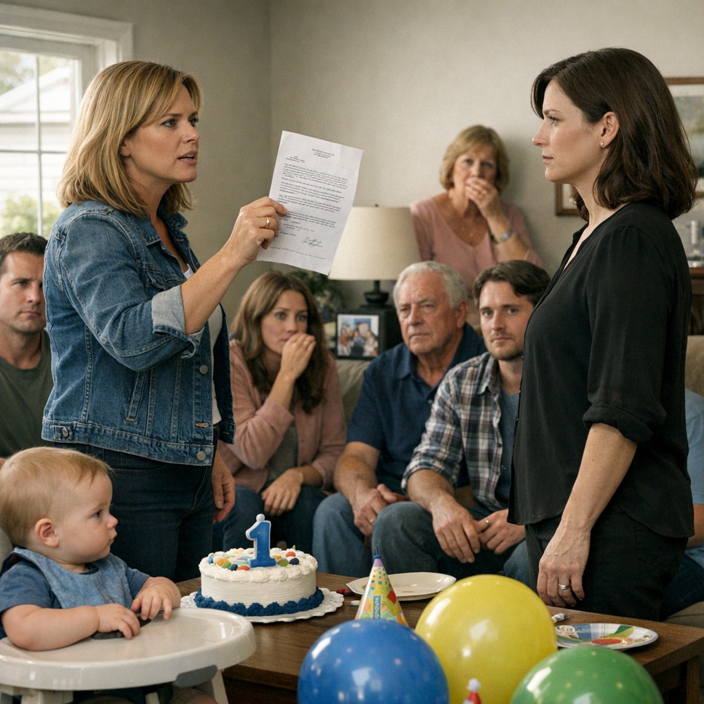 Het feest werd gehouden in Cassandra’s kleine huurhuis aan de rand van Austin, versierd met blauwe ballonnen en slingers die veel te vrolijk leken voor hoe ik me vanbinnen voelde. Ik was bijna thuisgebleven, maar mijn moeder had erop aangedrongen: « Adam zou willen dat je er bent voor de familie, » had ze gezegd, en ze gebruikte de theoretische wensen van mijn overleden echtgenoot als een wapen waartegen ik me niet kon verdedigen.