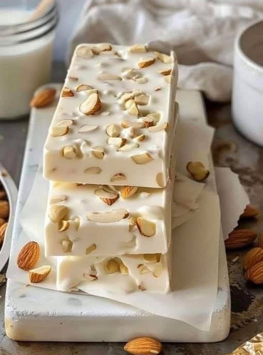 Torrone, de klassieke Italiaanse nougat, wordt gemaakt met eiwit, honing en suiker.