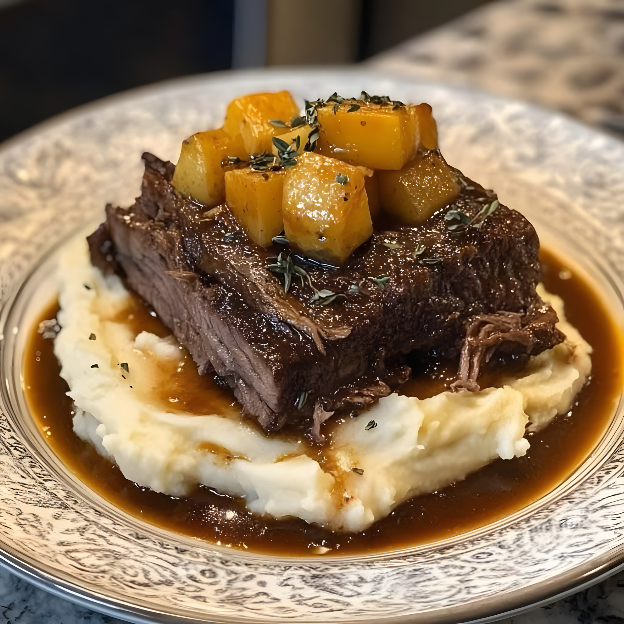 Dit recept voor stoofvlees op aardappelpuree is pure nostalgie en comfort food in één! 🥰 Het is een klassiek gerecht dat al generaties lang wordt doorgegeven, en niet zonder reden. Sappig, mals stoofvlees, langzaam gegaard in een rijke bouillon met geurige groenten, geserveerd op een bedje van romige, zelfgemaakte aardappelpuree. Een perfecte maaltijd voor familie-etentjes of gezellige, koude dagen. 🤤 Warmte, gezelligheid en heerlijke smaken gegarandeerd! 🏡