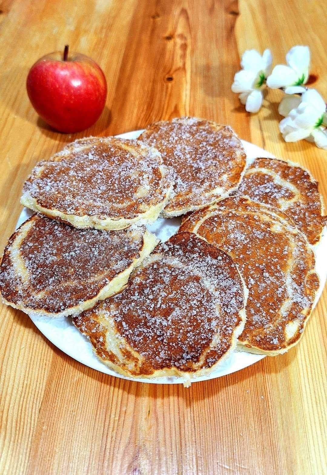 💛 Deze goudbruine appelpannenkoekjes, omhuld met een knapperige suikerlaag, zijn een nostalgische lekkernij die perfect past bij de herfst of als heerlijk zoet ontbijt. De combinatie van zachte appel en licht gekaramelliseerde suiker maakt ze onweerstaanbaar! 🍎🥞