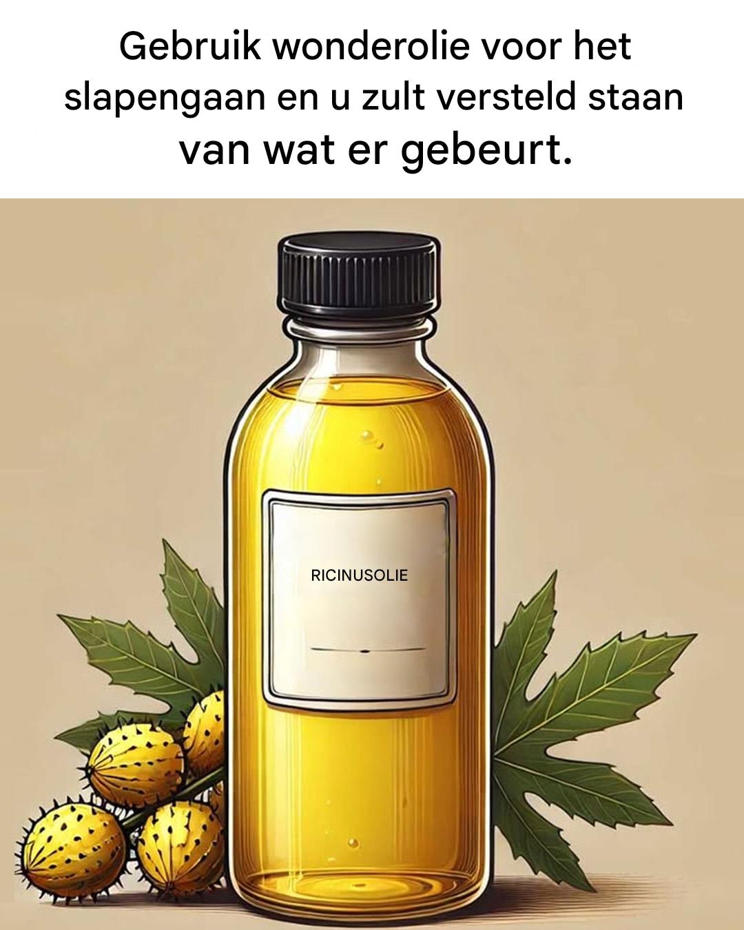 Sinds het oude Egypte wordt ricinusolie gebruikt vanwege de gezondheids- en schoonheidsvoordelen. Deze dikke, goudkleurige plantaardige olie wordt gewonnen uit de zaden van Ricinus communis en is een echte natuurlijke bron van voordelen. Rijk aan ricinolzuur – een uniek vetzuur – maar ook aan vitamine E en omega 6 en 9, verdient ricinusolie zeker een plekje op uw nachtkastje. Zijn geheim? Als u het voor het slapengaan aanbrengt, werkt het de hele nacht door, waardoor uw huid en haar de tijd krijgen om de voordelen ervan te absorberen.