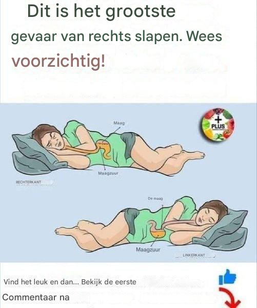 Over rust gesproken: hij raadt aan om op je linkerzij te slapen.