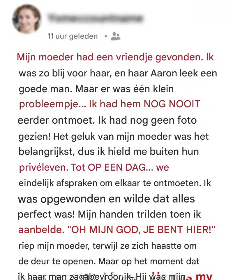 Toen mijn moeder 45 was, vond ze de liefde weer terug. Hoewel ik blij voor haar wilde zijn, was er iets aan Aaron, haar 25-jarige verloofde, dat me onrustig maakte.