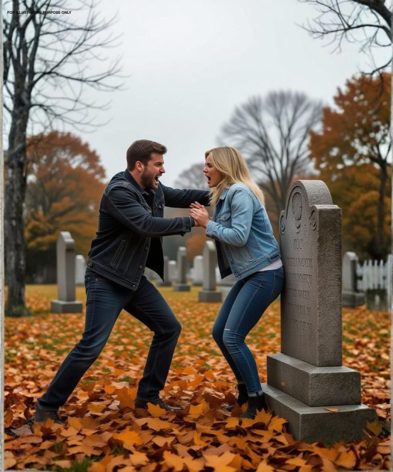 Op de begraafplaats duwde mijn broer me tegen de grafsteen van onze moeder en siste: « Hier hoor je thuis. » Wat hij zich niet realiseerde, was dat de andere nabestaanden achter hem stonden, met hun telefoon in de aanslag, en elk wreed woord opvingen.