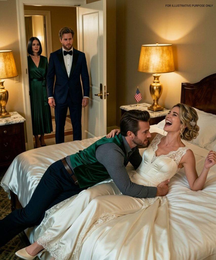 Daniel stond tegen de muur gedrukt. Zijn handen grepen Emma’s middel vast. Haar trouwjurk was net genoeg opgetild om elke twijfel weg te nemen. Haar lippenstift liet een afdruk achter op zijn lippen.
