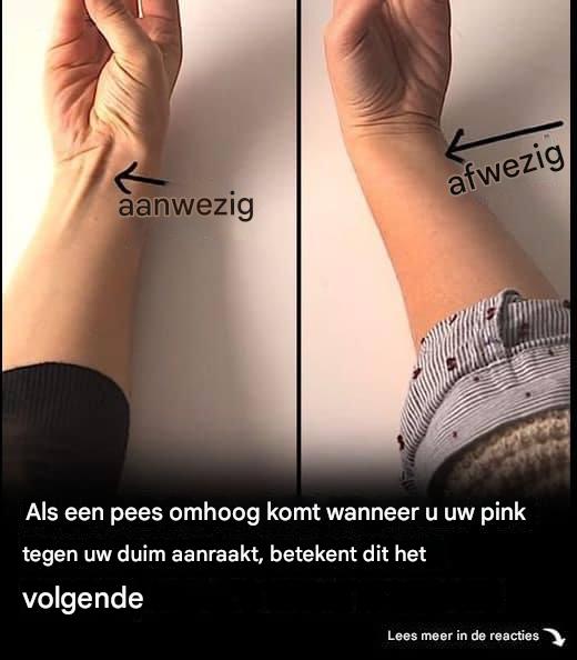 Als een pees omhoog komt wanneer u uw pink tegen uw duim aanraakt, kan dit de oorzaak zijn