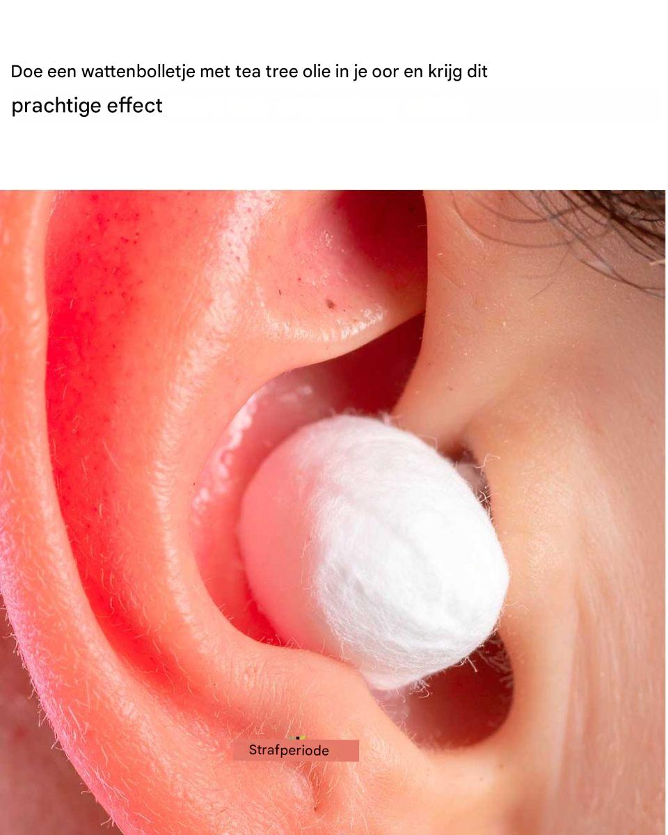 Plaats een wattenbolletje gedrenkt in tea tree olie in uw oor en voel het verbazingwekkende effect.