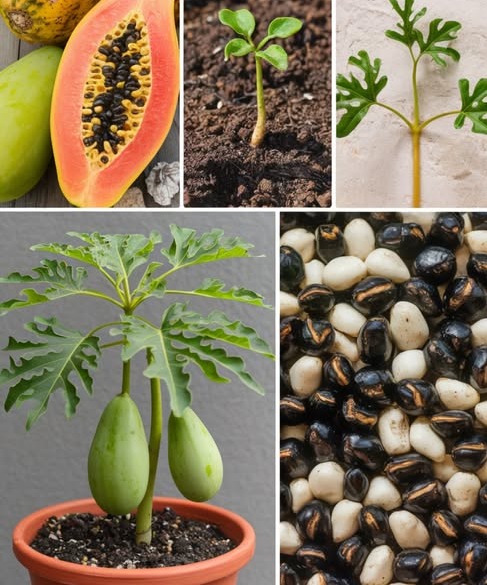 🌴 Papaja kweken in een pot: tropische oogst thuis  Eenvoudige methode voor smakelijk fruit, zelfs in een kleine ruimte  Keuze van pot en locatie Gebruik een grote pot met goede drainage Plaats in de zon: minimaal 6 uur direct licht per dag🍈