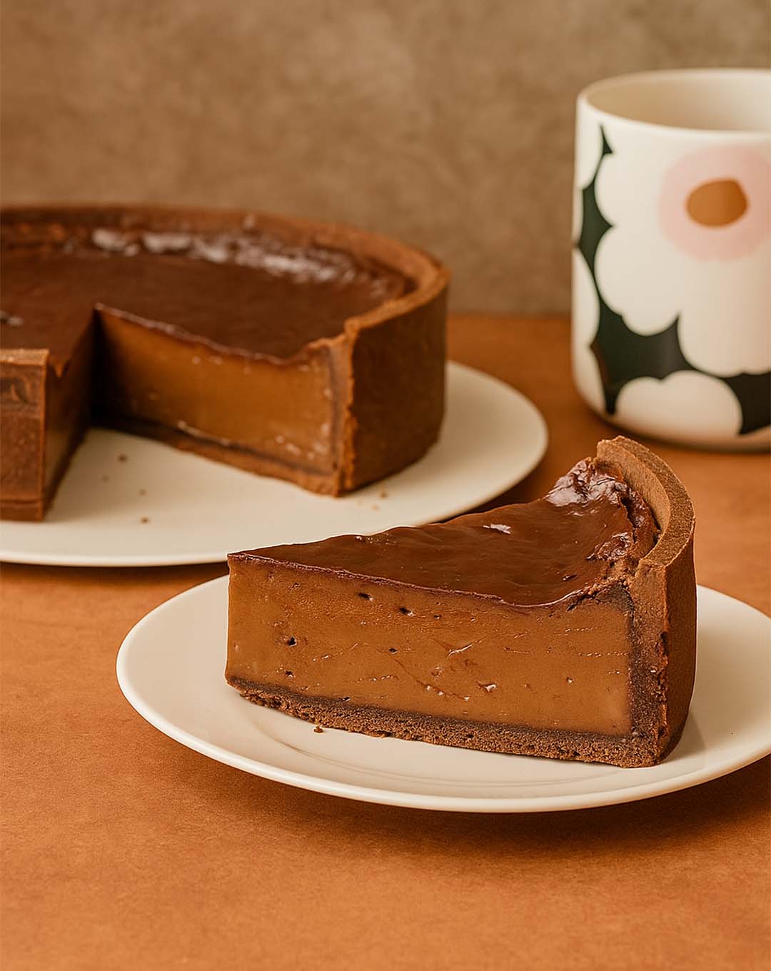 Met de perfecte hoeveelheid suiker verrukt deze chocoladeflan met zijn balans tussen zoetheid en karakter. De pure chocolade, rijk aan cacao, voegt een intense diepte toe die de fijnproevers zal bekoren. Dankzij het zachte, gecontroleerde bakken blijft de room smeltend zacht, terwijl het zanddeeg zijn stevigheid behoudt, voor een strakke snijervaring en perfect genot.