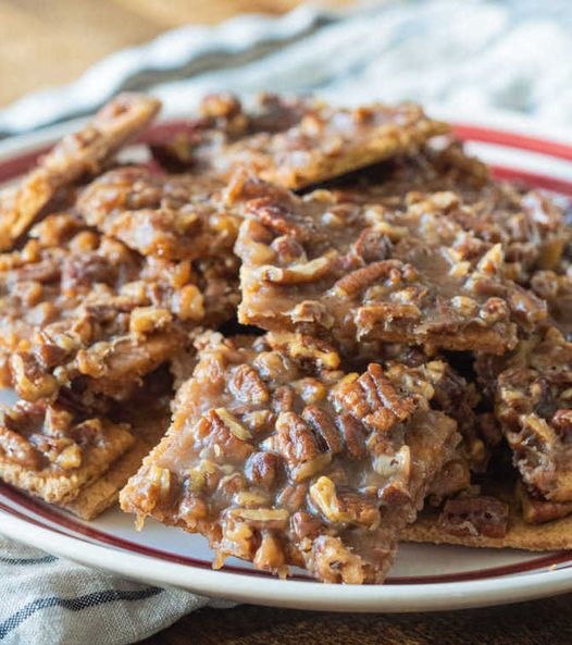 Dit recept bevat alles wat je lekker vindt aan pecannotentaart, maar dan sneller, eenvoudiger en knapperiger . Met een boterachtige karamel van bruine suiker over knapperige graham crackers en bezaaid met geroosterde pecannoten, zorgt het voor die rijke, nootachtige zoetheid in elke hap – zonder vork.