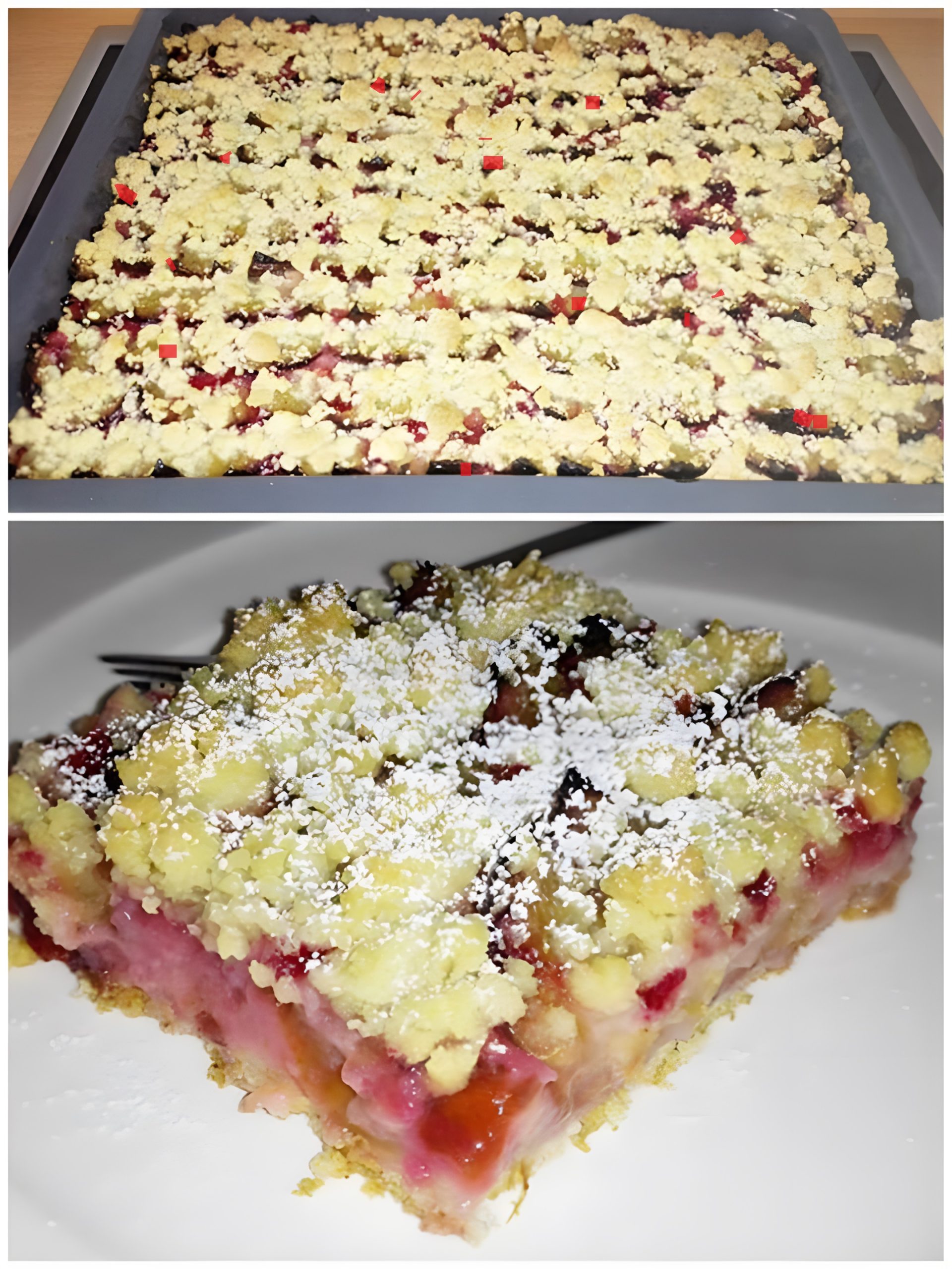 Een pruimen-kruimeltaart van de bakplaat is een echte klassieker: zacht gistdeeg, sappige pruimen en een knapperige kruimeltopping. Perfect voor bij de koffie of als dessert! 😍
