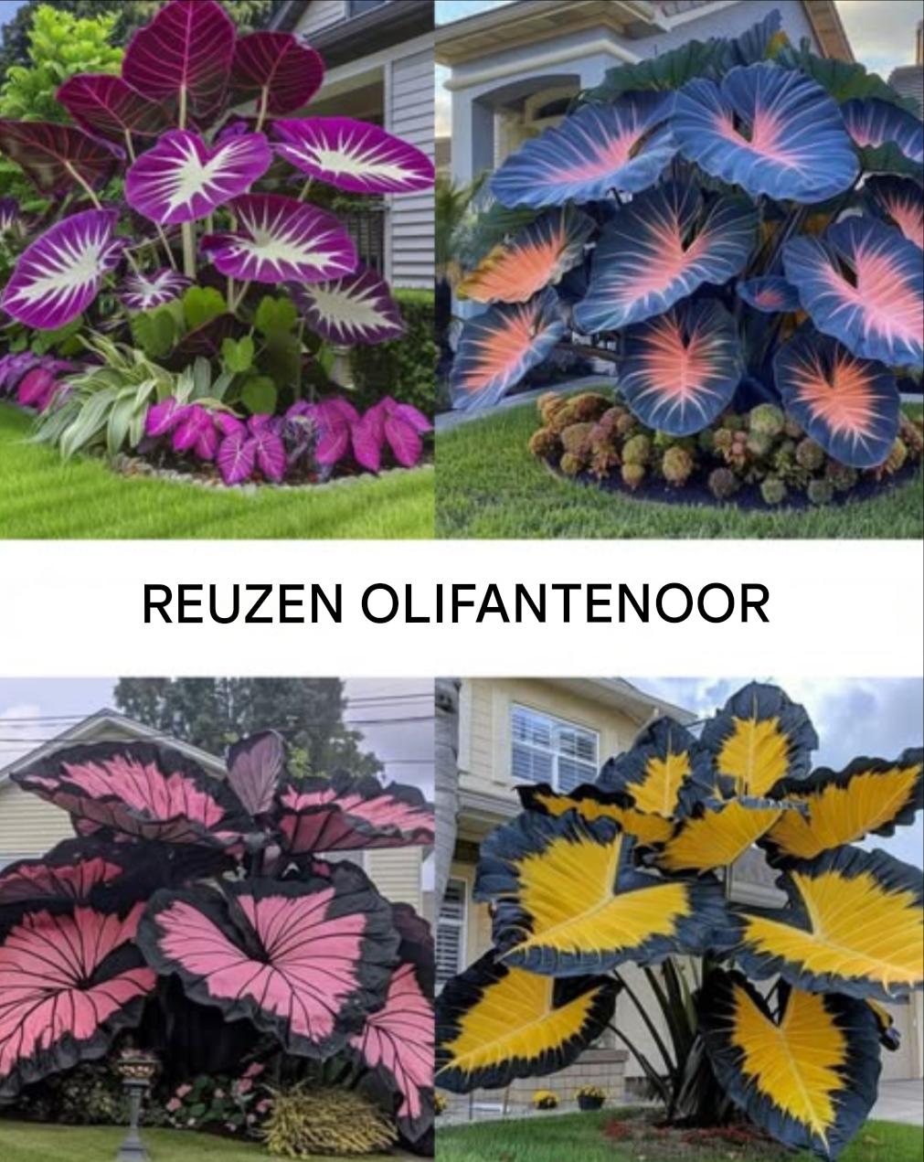 Reuzen Olifantsoor: een spectaculaire tropische touch. Een majestueuze plant die je ruimte omtovert tot een groene oase. Licht: Geeft de voorkeur aan halfschaduw tot volle schaduw voor optimale ontwikkeling. Water geven: Houd de grond altijd vochtig zonder hem te overstromen. Substraat: Rijk aan voedingsstoffen en goed gedraineerd. Ideale temperatuur tussen 18°C en 24°C. Luchtvochtigheid.![]()