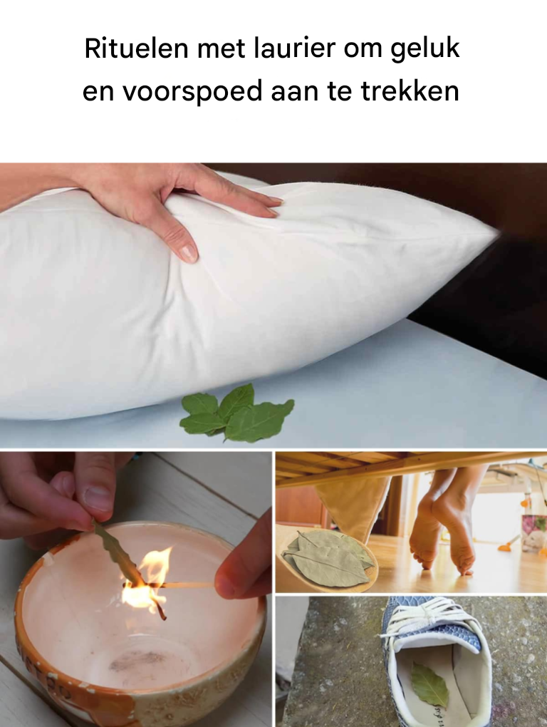Laurier wordt veel gebruikt bij het koken en staat bekend om zijn spijsverteringsbevorderende, slijmoplossende en ontstekingsremmende eigenschappen. Het heeft energetische krachten die worden geassocieerd met overvloed en wordt daarom veel gebruikt bij geluksrituelen.