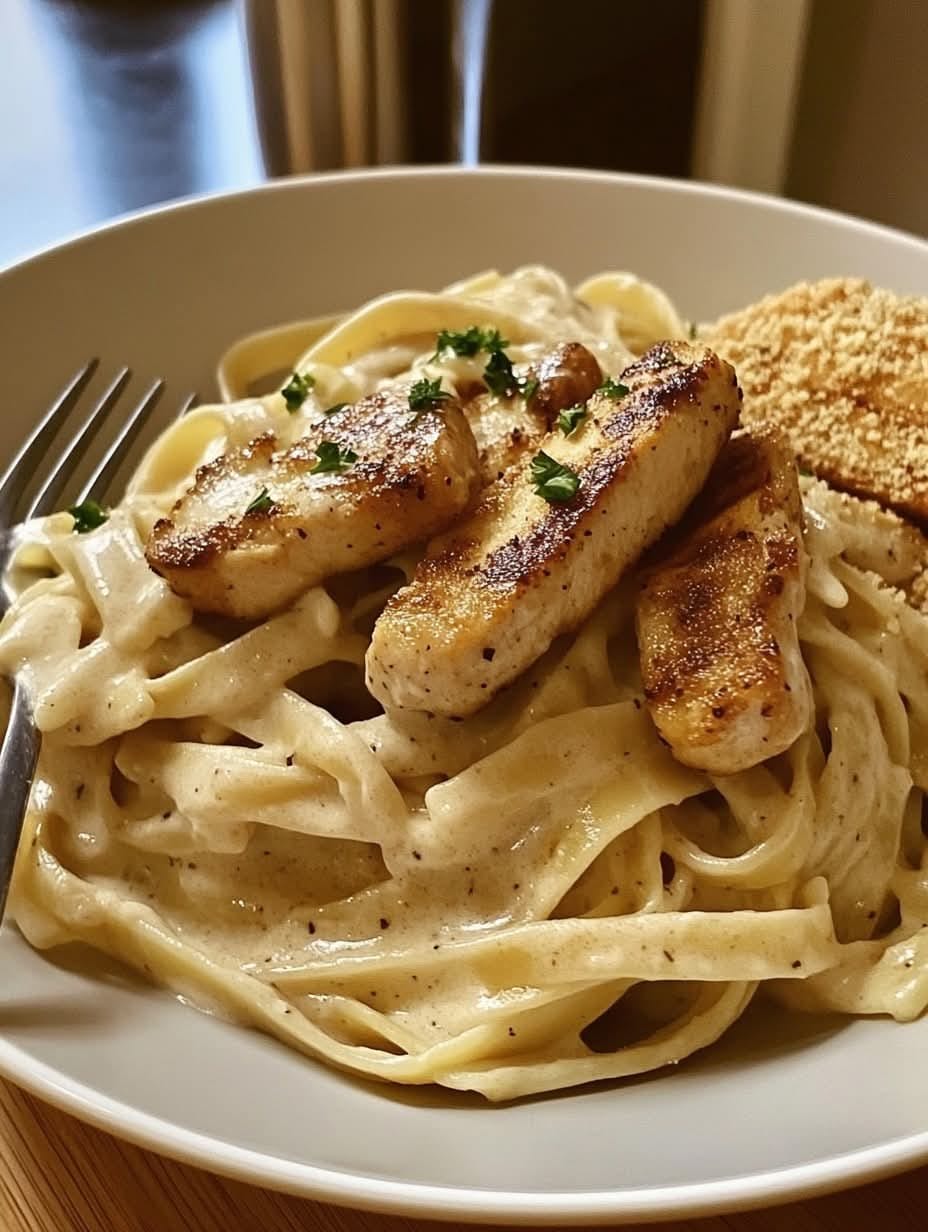 Een klassieke, romige pasta met malse kip en een knapperige twist van croutons. Perfect voor een luxe diner thuis!