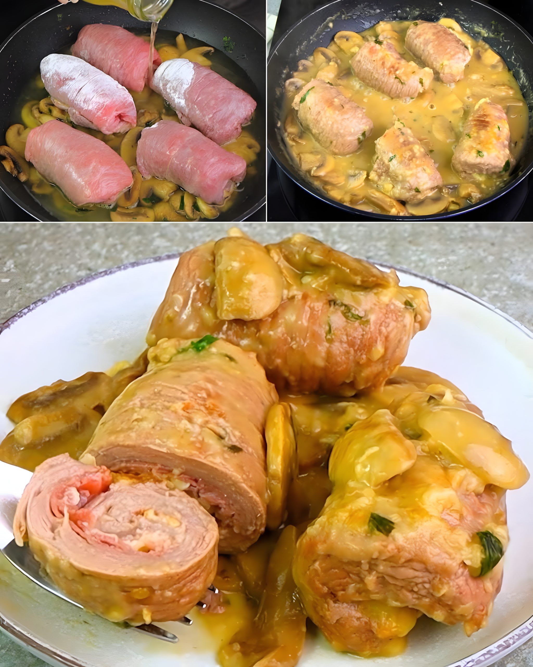 🥩 Romige Kalfsrolletjes met Champignons en Spek 🍄🧀 – Beste recepten
