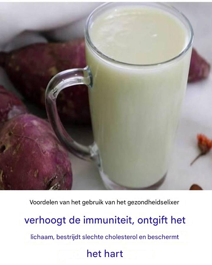 Dit recept is snel klaar en maakt gebruik van ingrediënten die je waarschijnlijk al in huis hebt. Zoete-aardappelmelk wordt beschouwd als een natuurlijke gezondheidsbooster, rijk aan essentiële vitaminen en voedingsstoffen die de algehele lichaamsfunctie en het welzijn ondersteunen.