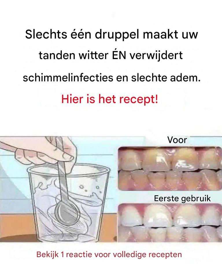 Tea tree olie helpt bij het verwijderen van verkleuringen op de tanden, veroorzaakt door koffie, thee, tabak en andere gepigmenteerde voedingsmiddelen. Hoewel het geen vervanging is voor professioneel bleken, kan regelmatig gebruik de glans en natuurlijke zuiverheid van je glazuur herstellen. Voeg simpelweg een druppel toe aan je gewone tandpasta of verdun het met water om zelf mondwater te maken.