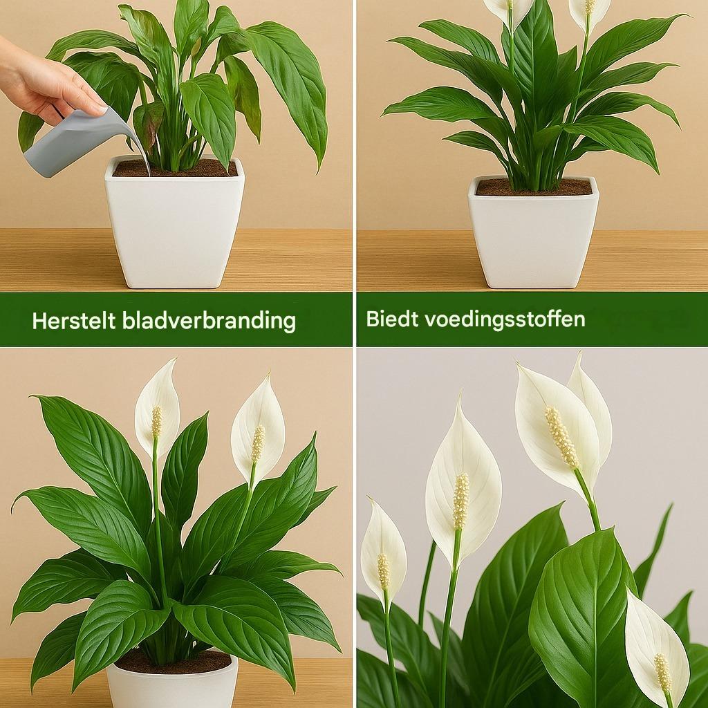 Rijstwater is rijk aan plantaardige stoffen zoals B-vitamines, aminozuren en zetmeel. Deze voedingsstoffen voeden de grond, versterken de wortels en stimuleren uw vredeslelie om meer bloemen te produceren. Het werkt als een milde, volledig natuurlijke meststof – geen chemicaliën.